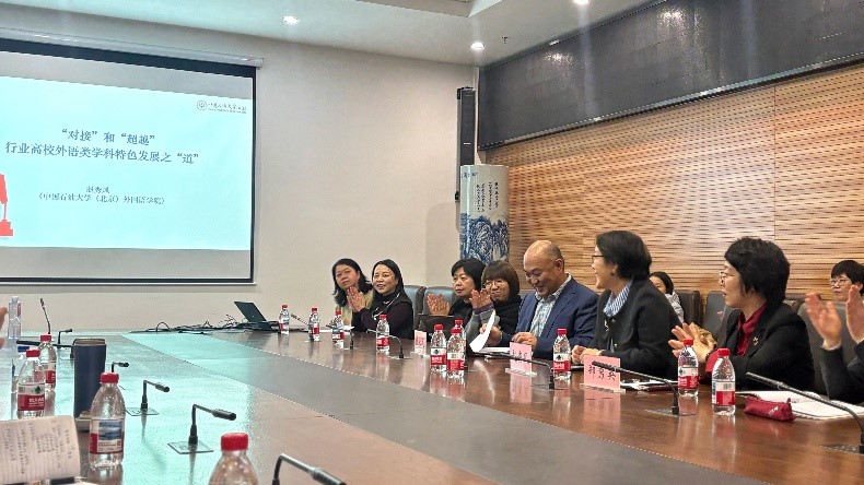 本次会议特邀中国石油大学(北京)外国语学院赵秀凤教授作题为“对接”和“超越”——行业高校外语类学科特色发展之“道”的专题讲座。赵教授围绕“启发、思考、行动、收获、规划”五个维度,分享了行业高校外语学科特色化发展的实践经验。讲座既介绍了中国石油大学(北京)锚定办学特色构建人才培养模式、推进学科建设的路径,更重点聚焦大学外语课程改革和英语专业学科建设,讲解了如何通过重塑课程体系、融入行业特色内容、创新教学方法,让大学外语教学精准对接学校国际化人才培养需求,更好服务学校发展战略。