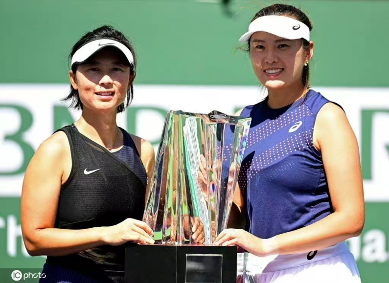 杨钊煊(右一)获得WTA1000印第安维尔斯站女双冠军